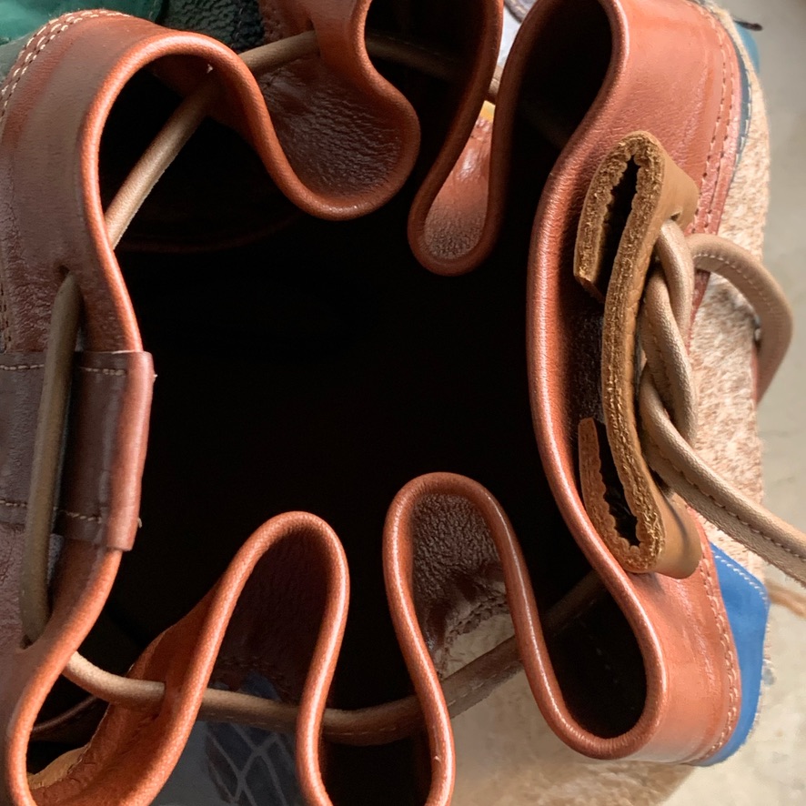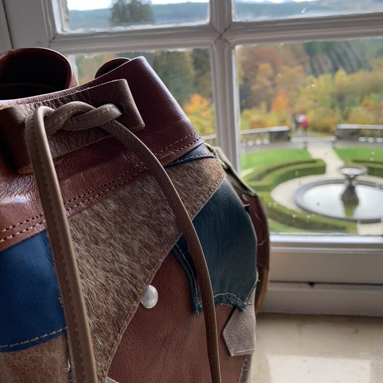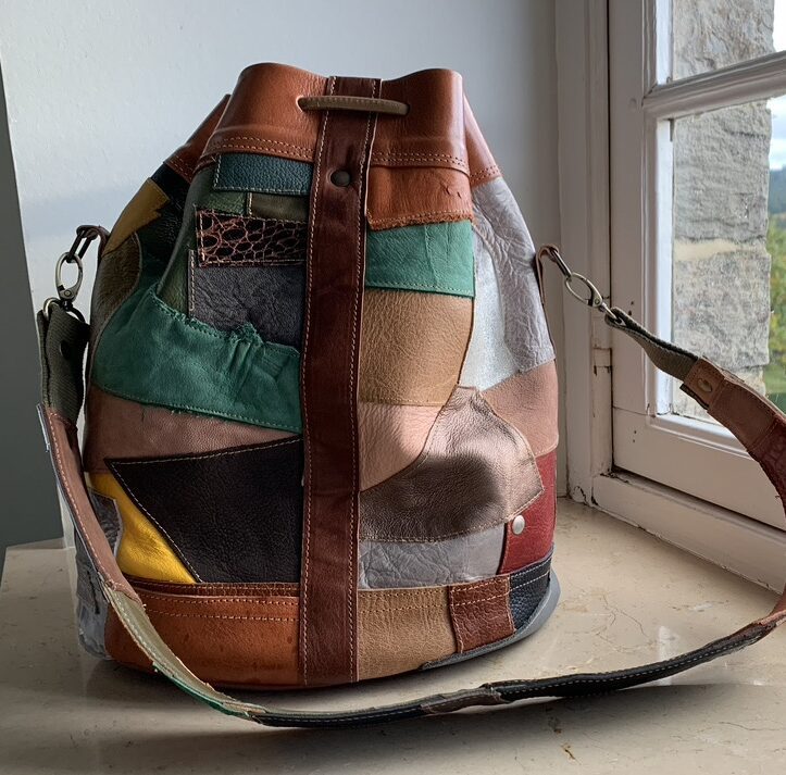 Gemaakt van allerlei stukjes leer, in allerlei kleuren zodat hij overal bij past!