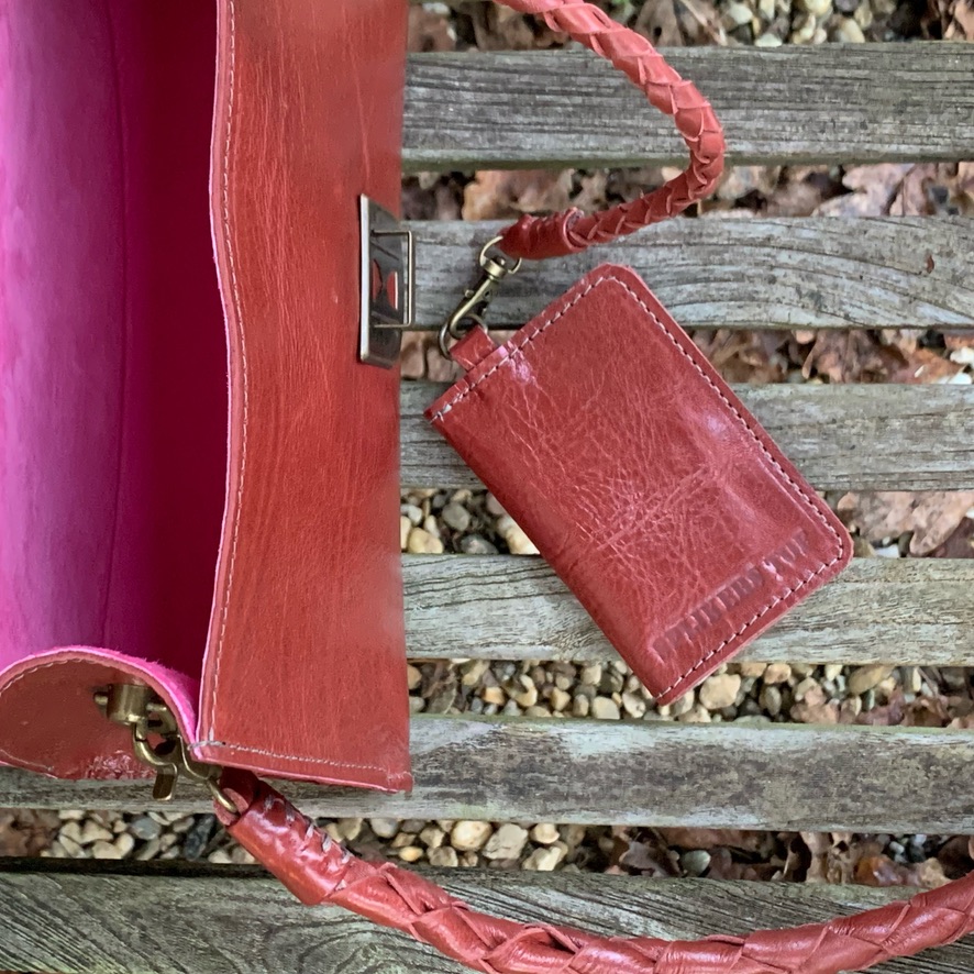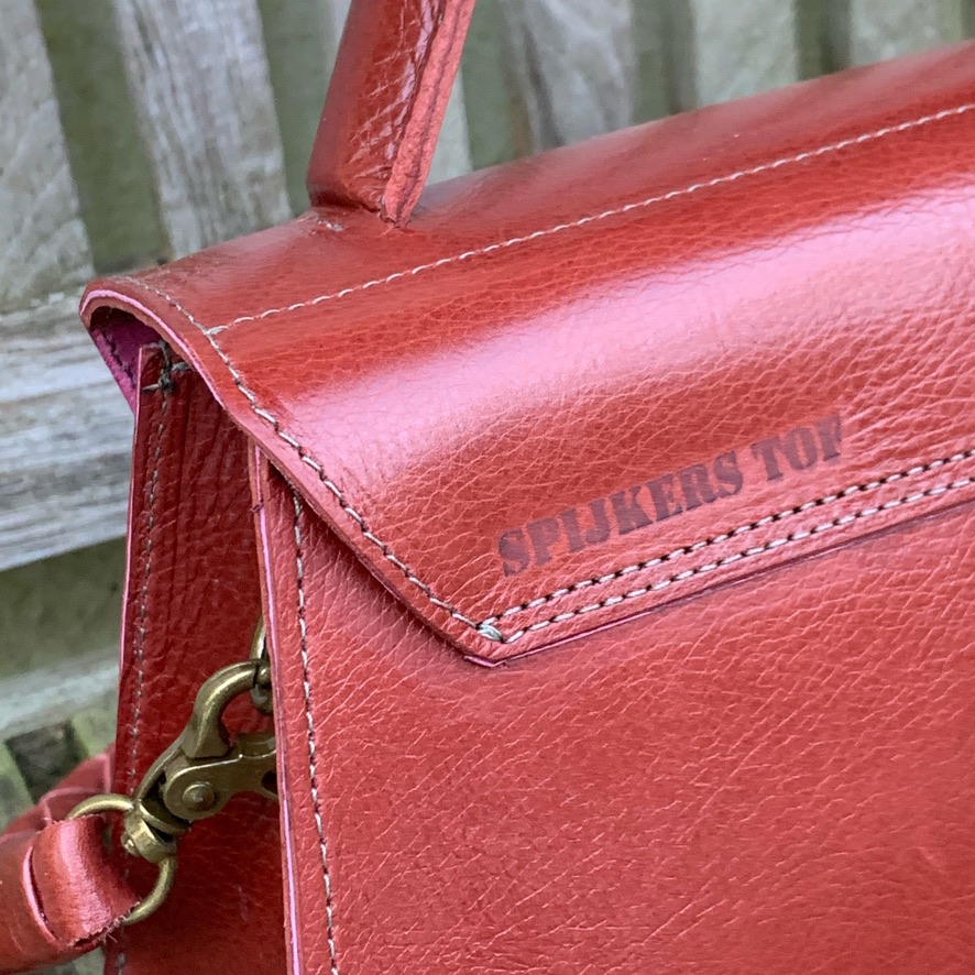 De binnenkant is gevoerd met een gezellig roze leertje.