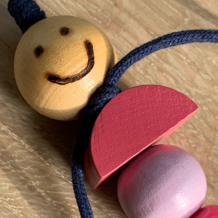 Ze is gemaakt van gerecyclede houten kralen dus ook een lekker duurzaam grapje.