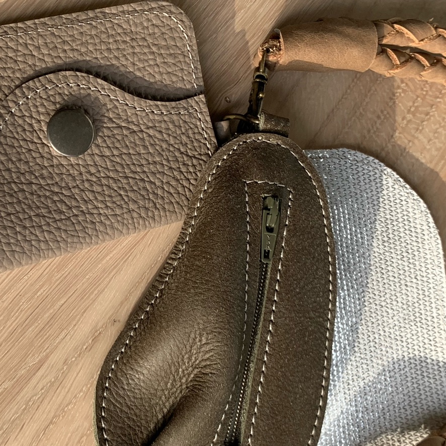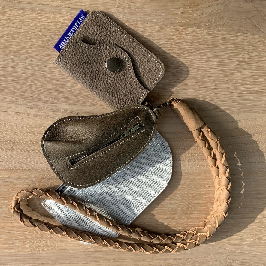 Een tasje voor je pasjes, oortjes, sleutels en kleine prulletjes, niet te groot zodat het niet te zwaar wordt.