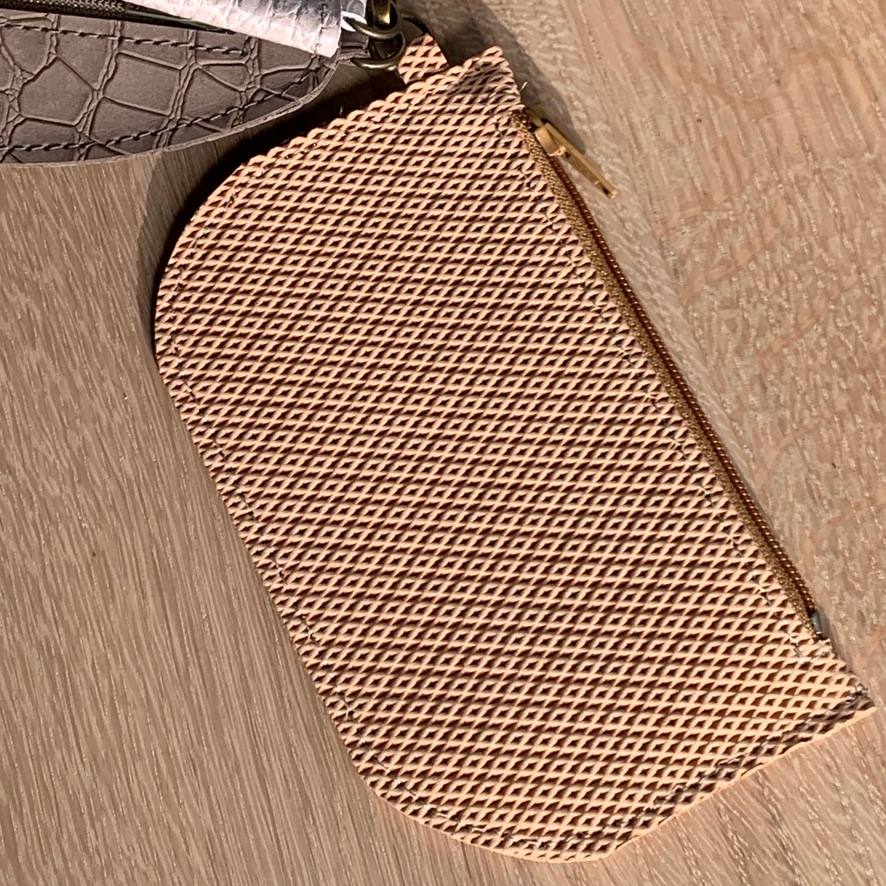Een tasje voor je pasjes, oortjes, sleutels en kleine prulletjes, niet te groot zodat het niet te zwaar wordt.